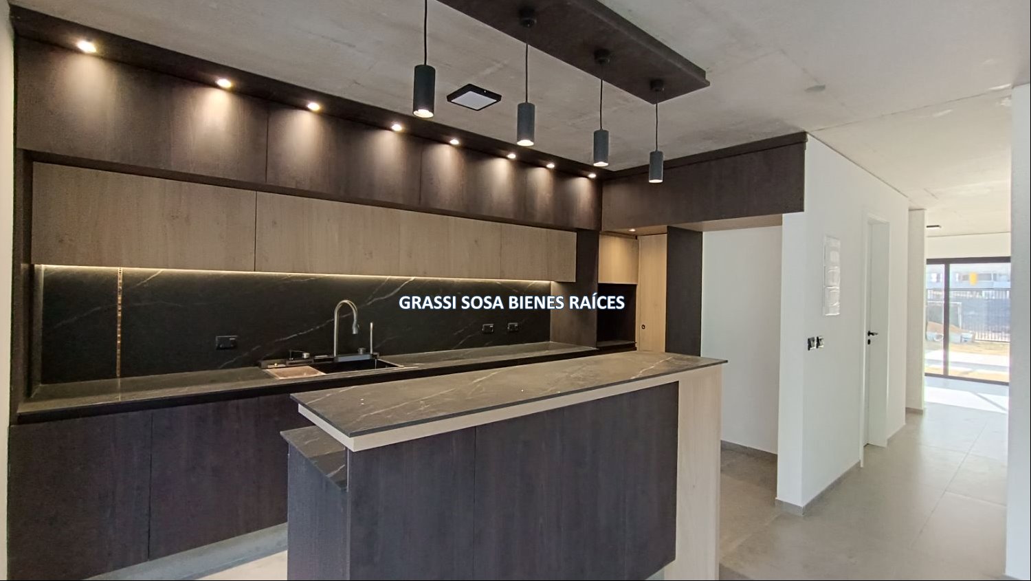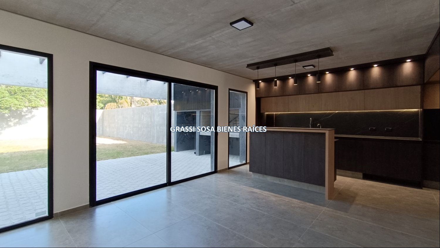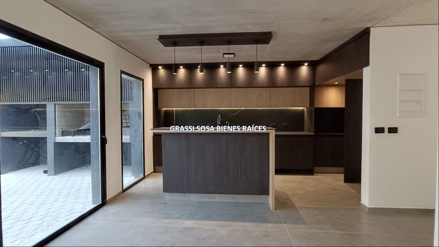 Living o estar al frente, amplio comedor con cocina integrada completamente vinculado al fondo y área de parrillero.